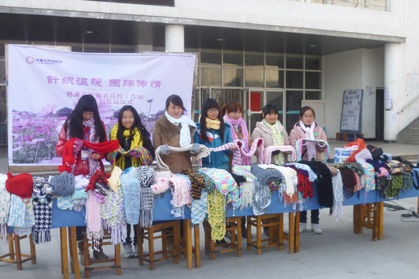 冬阳正暖,青年志愿者协会的工作人员忙碌在广场上,一张张桌子上,一条条针法不一、颜色各异的围脖整齐的摆放着。12月12日下午,格桑花安徽省高校工作站“围脖计划”发送仪式在BB贝博艾弗森官方网站翰林广场举行。这些围脖将会赠送给西部受灾地区的儿童,帮助他们度过寒冬。