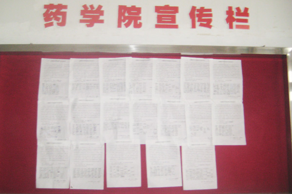 药学院团总支、学生会和助理团等学生组织也开展了形式多样的考风考纪活动。团学组织召集各班级代表一起开展了集中教育活动,明确提出作为学生干部,要率先垂范,考出水平、考出风格,不仅仅要诚信应考,还要考出良好成绩,不仅在工作中起模范带头作用,在学习中也同样如此。在倡议大会上,学生会副主席范文婷带领同学们宣誓:“认真复习,积极迎考,严守纪律,诚实应考,手握诚信,把握未来!”药学院还通过倡议书、海报、签名等形式,对全院的学生进行了进一步的宣传教育。