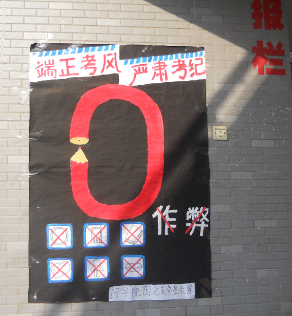 药学院历来非常重视学风建设,全院上下齐抓共管,严肃考风考纪,营造了良好的考试环境。近期这一系列活动的举行对端正考风考纪发挥了积极的作用,增强了同学们考试的诚信意识和纪律意识,有助于期末学习、生活等各项秩序的保持和考试作用的发挥。(文/汪杨,图/汪杨)