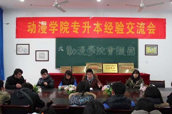 2月29日下午,动漫学院在会议室召开了2012届毕业生专升本经验交流会,旨在让动漫、动画、艺术设计等专业2009级和2010级的同学更充分地了解专升本,更有目标的规划自身大学生涯。