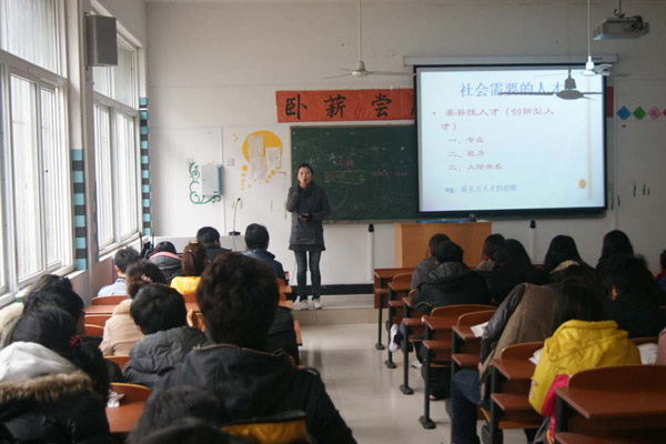 大学的生活与学习,不仅要丰富多彩,更要充实奋进。在学习和工作上多次获得殊荣的陈丽娜同学,总结了其三年以来的大学生活、学习经验,着重与同学们交流了学习方法。她表示,首先要为自己的大学生活做一个明确的规划,然后朝着目标坚持不懈地拼搏奋进。并以一段视频《那时我们的大学》,劝告同学们学习不能心浮气躁,要好好珍惜大学美好时光。