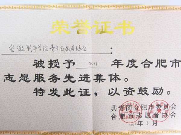贝博官网青年志愿者协会获评2011年合肥市志愿服务先进集体