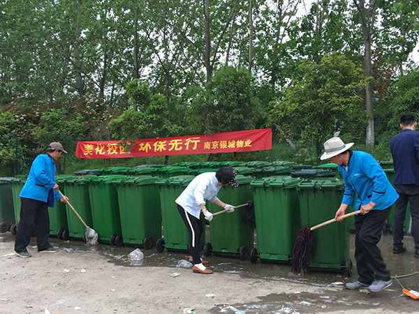 此次卫生清理活动开展范围为校园一期、二期、三期的草坪、绿蓠、校园广场、道路、围墙周边等露天公共区域。在总务处管理人员及物业公司人员的现场指导下,所有保洁参与人员分组同时进行并划分相应卫生责任区,以确保区域卫生的有效清洁。在连续劳动约3小时后,全面清理了校园绿化带内的白色垃圾和杂物、树木悬浮物、楼宇外围卫生死角,铲除了公共区域小广告、擦拭干道垃圾箱60余个、集中清洗垃圾桶近200个。