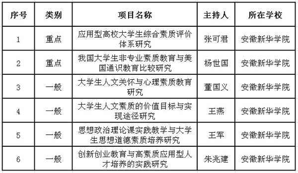 2013年安徽省高等学校人文社会科学重点研究基地BB贝博艾弗森官方网站大学生素质教育研究中心招标项目立项公示