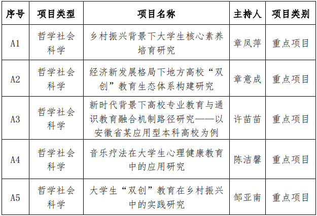 关于大学生素质教育研究中心推荐2022年度安徽高校科学研究项目评审结果的公示