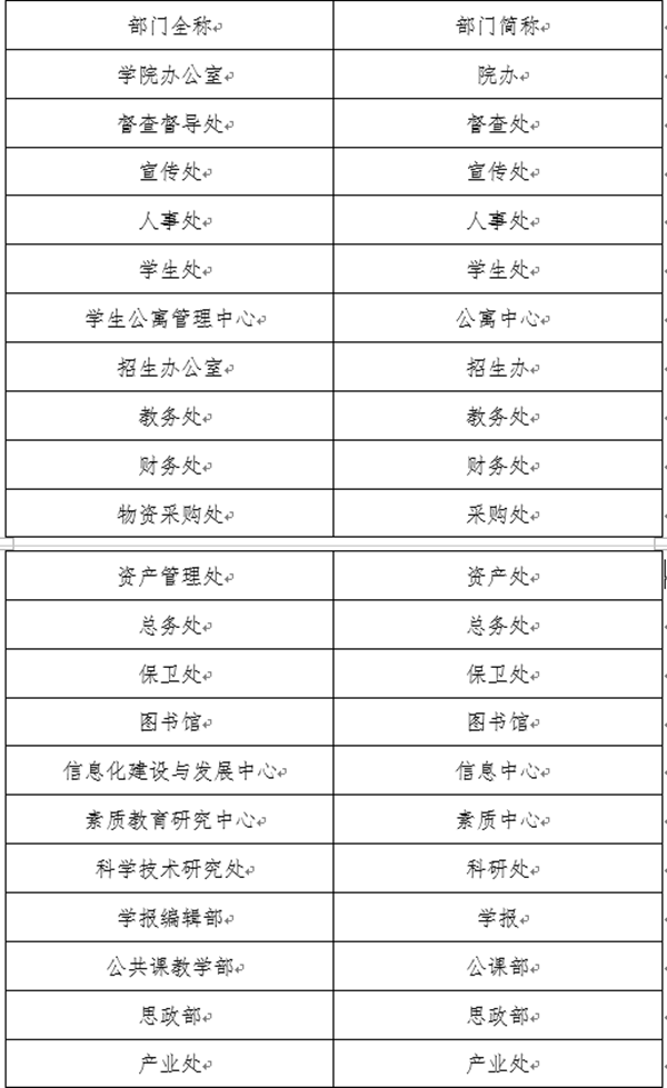 (2)请各位老师登录OA下载附件《员工部门名称对照表》,确认各自部门简称;部门内部存在重名现象的教师请于9月7日11:00前联系丁玮老师,提前登记区别信息,如:张三1、张三2。
