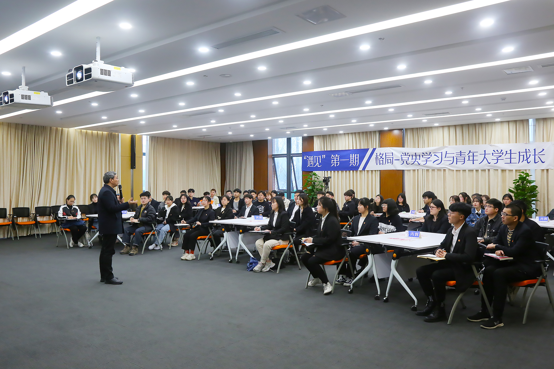 3月15日,贝博官网邀请安徽师范大学马克思主义学院路丙辉教授为青年学生作了一场名为“格局-党史学习与青年大学生成长”的主题讲座。各学院、社团组织学生参与听讲。现场气氛活跃,同学们热情高涨。