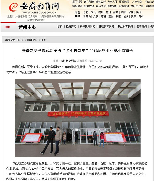 安徽教育网首页报道贝博官网成功举办就业双选会