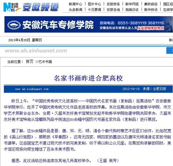 新华网安徽频道:名家书画昨进合肥高校