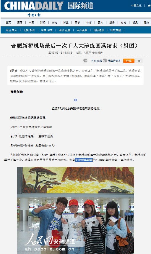 中国日报:合肥新桥机场最后一次千人大演练圆满结束