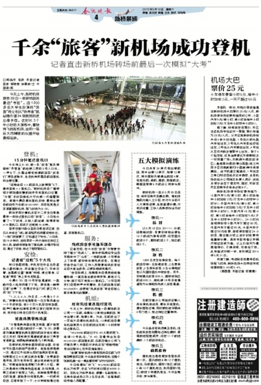 新桥机场一旦从5月30日启动,将存在数月的磨合期。据机场集团内部人士介绍,针对今日的千人大演练成果,全面查遗补漏,对标识设置,工作人员熟悉作出及时调整。