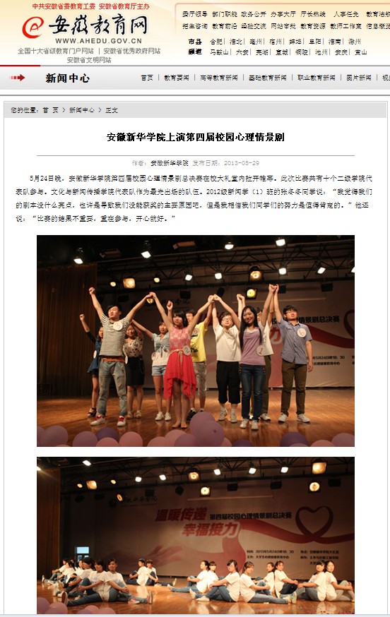 安徽教育网:BB贝博艾弗森官方网站上演第四届校园心理情景剧