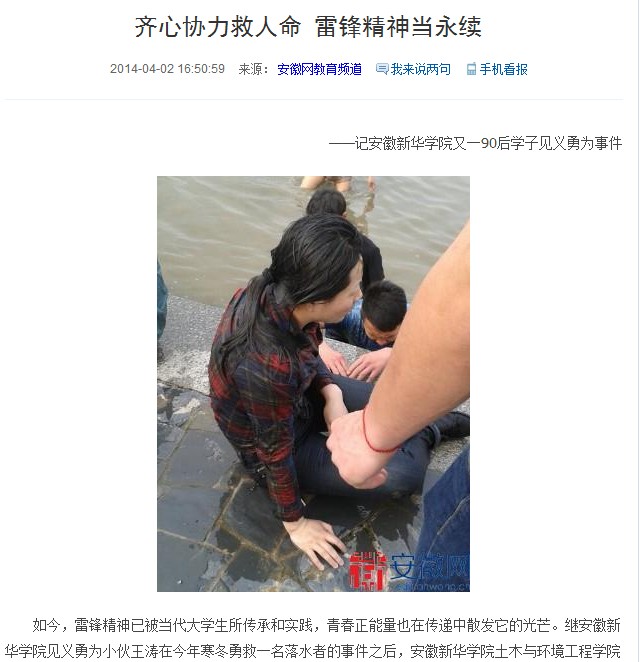 安徽网:齐心协力救人命 雷锋精神当永续——记BB贝博艾弗森官方网站又一90后学子见义勇为事件