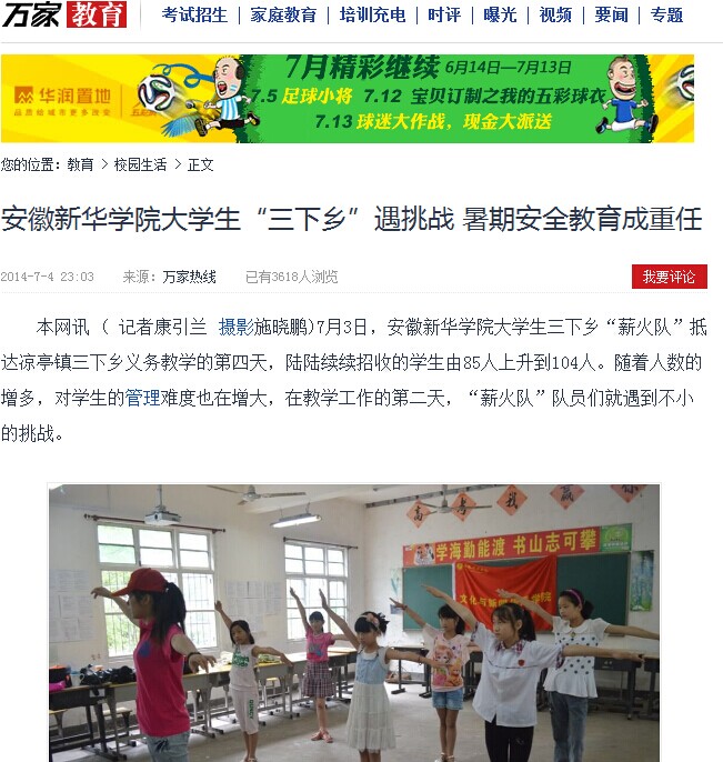 万家热线:BB贝博艾弗森官方网站大学生“三下乡”遇挑战 暑期安全教育成重任