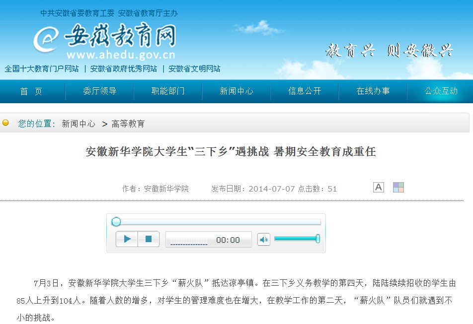 安徽教育网:BB贝博艾弗森官方网站大学生“三下乡”遇挑战 暑期安全教育成重任