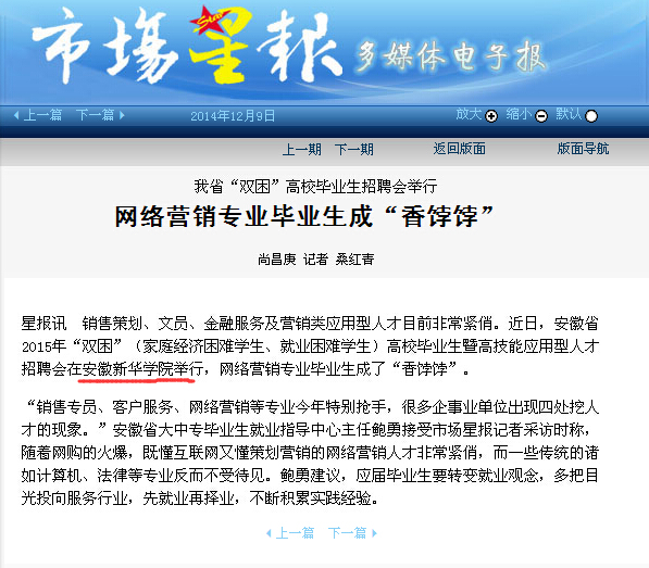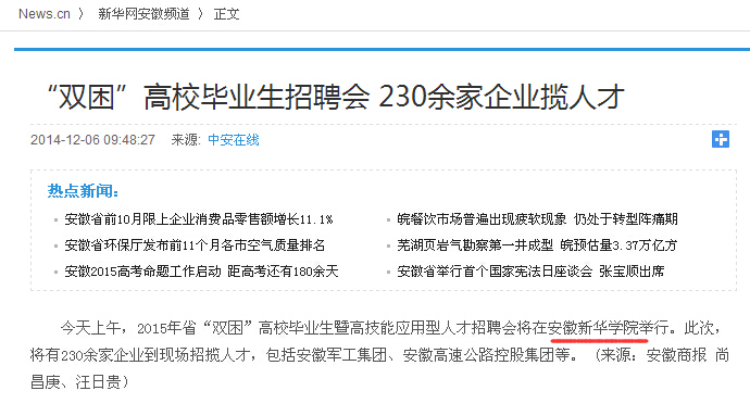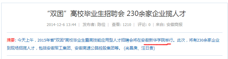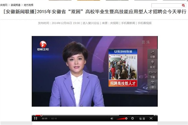 安徽商报、市场星报、安徽新闻联播、新华网安徽频道等媒体报道贝博官网承办开展2015年安徽省“双困”高校毕业生暨高技能应用型人才招聘会