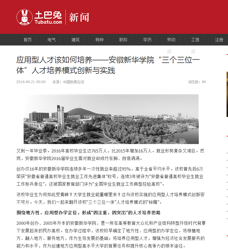 光明网、中国教育在线、搜狐网、中国网传媒经济、土巴兔新闻:应用型人才该如何培养——BB贝博艾弗森官方网站“三个三位一体”人才培养模式创新与实践