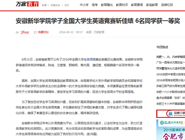 中国教育在线:http://www.eol.cn/anhui/anhuinews/201606/t20160622_1418415.shtml