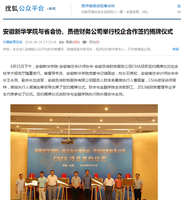 中国教育在线、搜狐网、万家热线:BB贝博艾弗森官方网站与省会协、员倍财务公司举行校企合作签约揭牌仪式