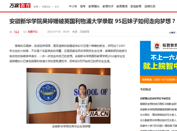 万家热线:BB贝博艾弗森官方网站吴婷姗被英国利物浦大学录取 95后妹子如何走向梦想?