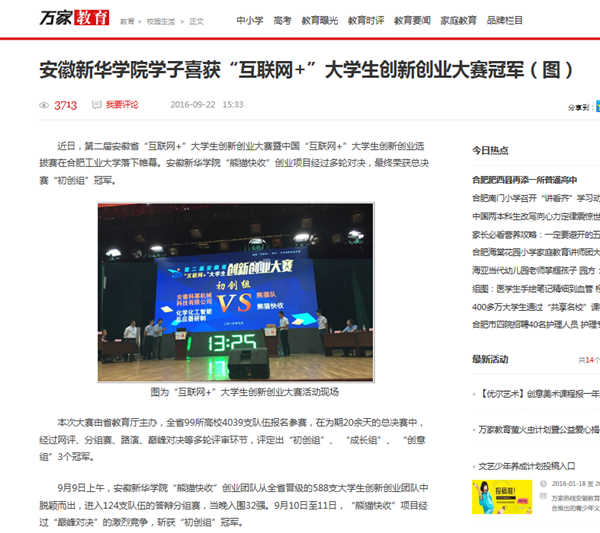 中国教育在线、今日头条、万家热线:BB贝博艾弗森官方网站“熊猫快收”创业项目问鼎