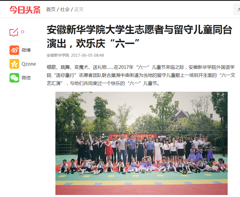 今日头条:BB贝博艾弗森官方网站大学生志愿者与留守儿童同台演出,欢乐庆“六一”
