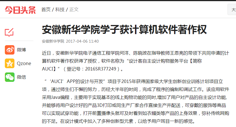 今日头条:BB贝博艾弗森官方网站学子获计算机软件著作权