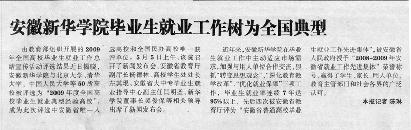 《新安晚报》:新华入选“就业典型”