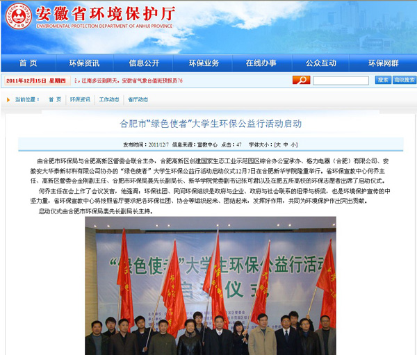 安徽省环保厅网站报道合肥市大学生环保公益行在贝博官网启动