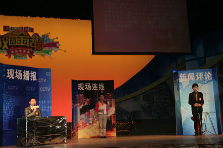 流畅的新闻播报,机智的现场主持,精辟的新闻评论,剑拔弩张的唇枪舌战……在新闻类主持、才艺展示、说学唱逗、正反辩论等比赛环节中,参赛选手竞展“绝技”,或大气,或幽默,争相展现青春风采,释放年轻力量的激情与活力。比赛中选手们的语言功底、表达能力、情感表现和即兴发挥等方面均给评委们留下了深刻的印象。来自各大高校的方阵队员们挥动着荧光棒,不时响起阵阵热烈的、长久的口哨声、欢呼声和呐喊声,把比赛一次又一次推到了极高的浪潮。