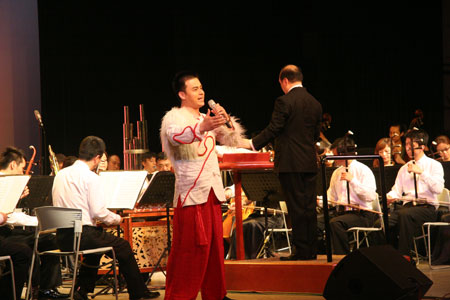 5月12日下午,我院实验剧院响起了中央民族乐团的金色旋律。由教育部、财政部、文化部三部委联合主办的“高雅艺术进校园”活动2011年湖南高校巡演走进我院。学院党委书记易介南、院长鲁雁飞,副院长周文清、杨向东、刘家海与一千余名师生共同欣赏了这场精彩的民族艺术盛宴。