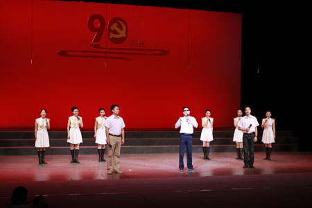 6月23日晚,由学院工会举办的庆祝建党90周年红歌大赛在实验剧院隆重举行。学院党委书记易介南、院长鲁雁飞,党委副书记、纪委书记黄宏玉,副院长余会春、周文清、杨向东、刘家海,工会主席彭爱莲出席并观看了整场比赛。