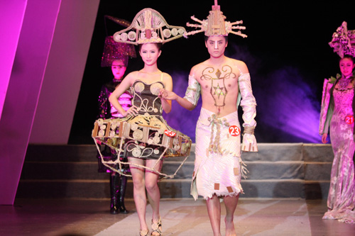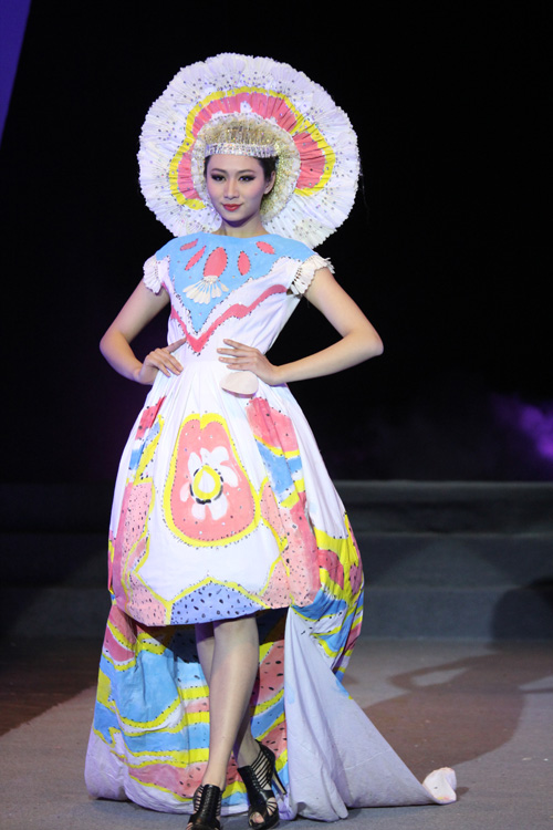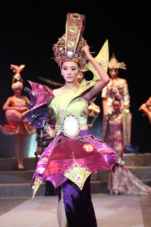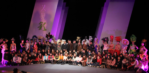 展示活动以“又见彩虹”为主题,展示的60件服装作品从设计构思、选料、打版制作、晚会模特的化妆造型和服饰配搭、作品的主题及背景音乐等每一个环节均是在老师的指导下由学生自己设计、定位、制作。学生综合自己对时尚与服饰的理解,运用流行的设计元素,通过娴熟的剪裁技艺,植入独到的设计语言,展现了既前卫又不失优雅的服装魅力,赢得现场热烈的掌声。
