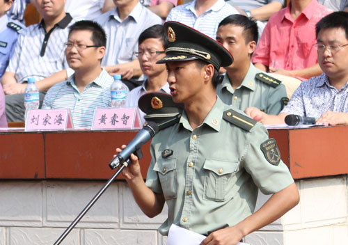 国防科技大学蔡学武上校对本次军训做了要求,参训学生代表和参训教官代表分别作了表态发言,全体新生就军训进行了宣誓。