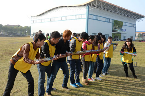随后,拓展训练在“团队破冰”项目中正式开始,师生们分成四队进行训练。训练中,每一位队员都摒弃年龄、性别的差异,克服师生角色的不同,发扬不抛弃不放弃、团结一心、坚持不懈的精神,充满信心,激情昂扬,完成了“高空断桥”、“雷区取水”、“珠行千里”以及“翻越救生墙”等一系列拓展项目。大家都深深的体会到互帮互助、同心协力的团队力量,伴随着感动的泪水,每一位同学都发表了自己的感言,表示要将这种精神带到以后的学习和生活当中,使这个大家庭变得更加团结、和睦。
