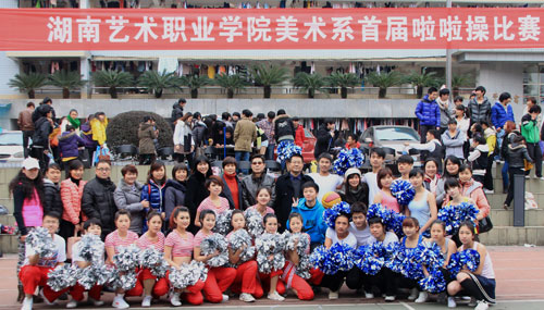 为丰富校园文化生活,加强学生健康体质,增强学生团队意识,展现大学生的青春活力,12月12日下午,学院美术系首届啦啦操大赛在南院篮球场激情开赛。副院长余会春、杨向东、纪委书记彭爱莲,以及部分系部领导出席并观看了比赛。