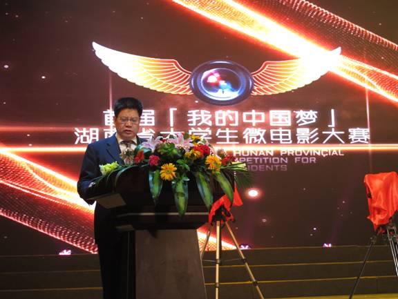 省委宣传部副部长、省文明办主任宋智富致辞中希望各高校在“我的中国梦”微电影创作大赛中要精心组织,广大青年学子要踊跃参与,共同谱写湖湘学子心中共同的“中国梦”。