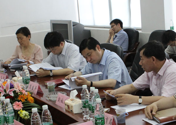 夏建平及与会人员查看汇报材料