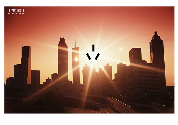何进老师的《节能》系列作品运用广告创意设计的独创性原则,提倡研究开发节能产品,充分运用地热能和太阳能,简洁洗练的传递出建设两型社会的内涵;同时能够加深人们对节能减排重大意义的认识,以及节约资源和保护环境的意识,积极投身到节能减排的行动中来,一同建设碧水蓝天的美好洁净城市。