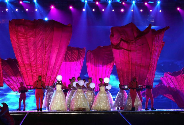 开幕式分为《梦之源》、《梦之韵》、《梦之颂》三大体育梦想篇章,在舞台上尽情展示着长沙人的体育激情与梦想。我院学生参与了《飞向辉煌》、《鼓阵潇湘》、《星球节拍》、《激情之夜》等舞蹈节目的演出,学生们时而热烈奔放、时而柔美多情的表演赢得了观众们的热烈掌声,充分展现了艺院学子的美好风采。