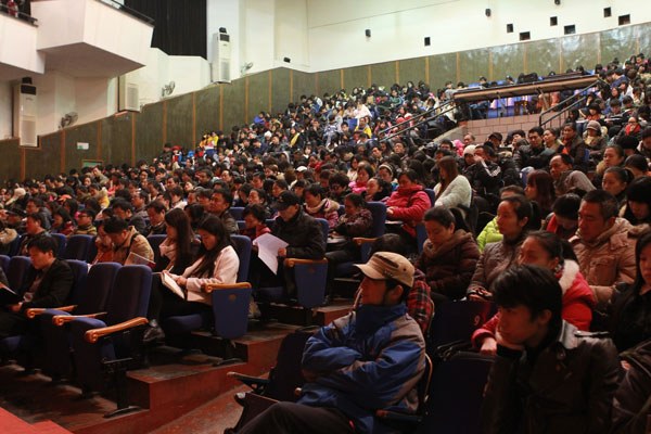会场内大家聚精会神地学习报告
