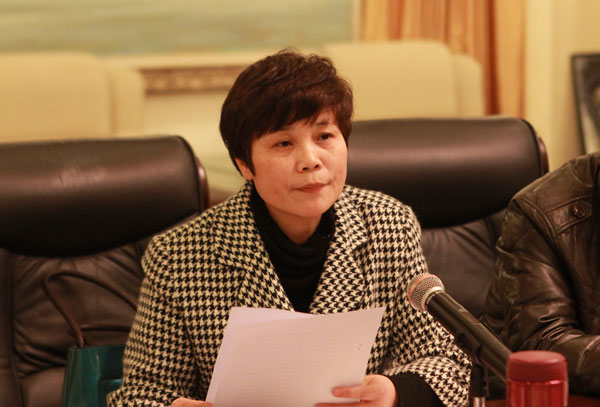 彭爱莲同志带领大家学习相关文件精神