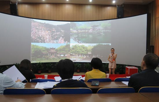 该比赛分为专业知识笔试、现场导游讲解和才艺展示三个环节,54名选手被分为三组,循环进行比赛。在现场导游讲解环节,选手除了要进行五分钟的景点讲解外,还要进行两分钟即兴演讲和现场知识问答。我院两名选手为大家带来了《张家界风情园》和《桃花源》的现场导游讲解、民族舞和诗朗诵的才艺展示,获得了评委的好评。特别是选手们的才艺展示,获得了9.7和9.66的高分。