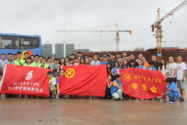 6月20日上午,学院70多名青年师生代表在学工处、院团委的组织下冒雨来到星沙松雅湖新校区建设工地,对工程项目部的建设者们开展慰问,并实地参观和了解新校区建设情况。