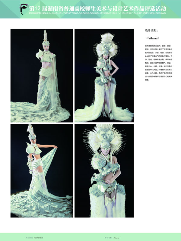 我院美术系教师张瑶燕作品《年前的守候》获教师组一等奖;周朝晖作品《古窑陶赏》获教师组二等奖;梅君艳、张楠、张艳武作品《相遇的电波》获教师组三等奖;黎波作品《环保轮胎椅》获教师组优秀奖。学生龙炎平作品《稻花湘》获一等奖,指导老师为聂进;蒋冬琴作品《Athena》获一等奖,指导老师为张晶晶;张雅静作品《Time Track》获二等奖,指导老师为周朝晖;李奥林作品《精在咫尺》获三等奖,指导老师为黎波;王雪莉作品《Colorful black—涂鸦工作室》、李莹作品《私人订制—办公空间环境设计》、唐清萍作品《素色主题餐厅设计》、吴晶晶作品《Pink Pearl》获优秀奖,指导老师为李海海、焦立强、许少玲。