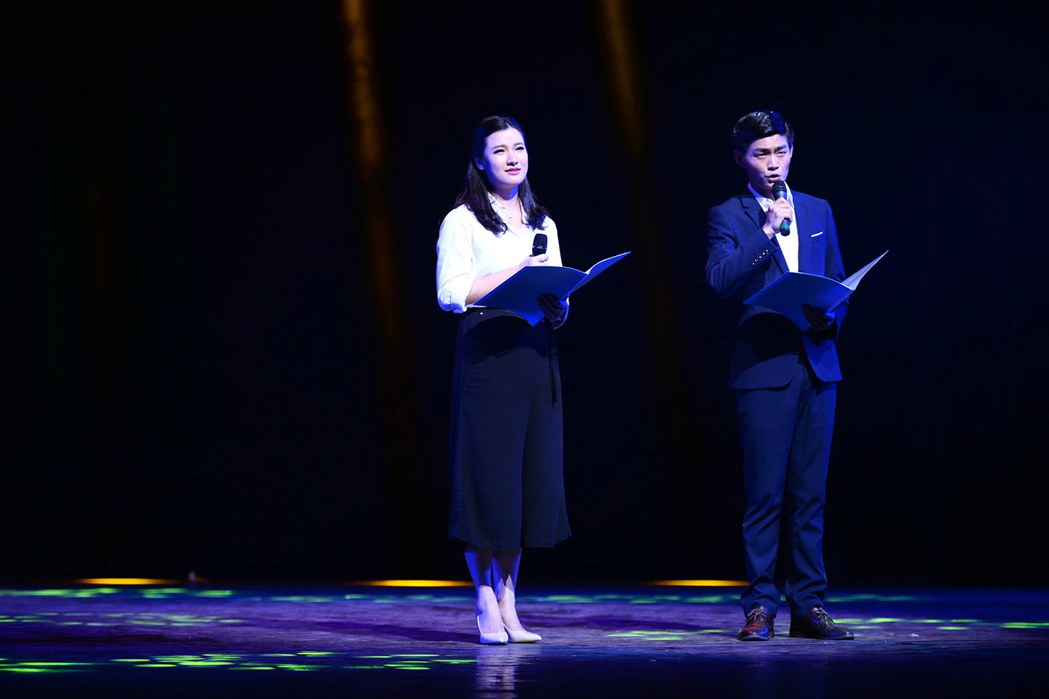 整场演出以“一路追寻”为主题,将播音与主持、舞蹈、音乐、戏曲等多种艺术元素融合在一起,多彩演绎充分展示了中青年教师扎实的专业技能和综合素养,展现了学院深厚的艺术底蕴。配乐诗朗诵《继承·发展》,字正腔圆、饱含深情的讲述着记者的伟大与崇高;舞蹈《孤鸿》、《牧人浪漫曲》、《英吉沙小子》等,在刚柔相济的优美舞姿中灵动诠释舞曲的韵律和情感;唢呐《百鸟朝凤》运用循环换气法、快速双吐演奏技巧使具有浓郁地方特色的旋律充满活力,宏大的气势震慑全场;《红莲,你在哪里》、《我的爱与你相伴终生》等,深情的演唱让观众仿佛置身于歌剧《运河谣》、《木兰诗篇》的真实情境中;《Mecavity》、《十字街头》等如痴如醉的表现着音乐剧的故事情节以及其中所蕴含的情感;《湘花烂漫》呈现了戏曲的传承发展,一招一式、一板一眼的演出折射出戏曲的无穷魅力和博大精深......