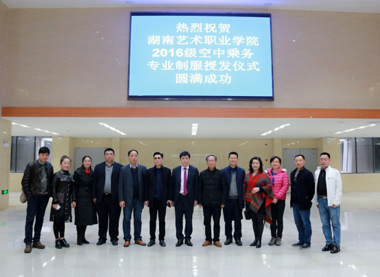 3月23日下午,我院社文系2016级空中乘务专业制服授发仪式在松雅校区文化教学楼学术报告厅隆重举行。学院院长沈继安,副院长余会春、杨向东,北京中航未来科技集团董事长刘永、董事长助理庞庆国出席本次授发仪式,学院教务处、招就办负责人,社文系负责人、空乘专业教师、专职辅导员、班主任和2016级空中乘务专业全体学生参加仪式。仪式由社文系党支部书记蒋平主持。