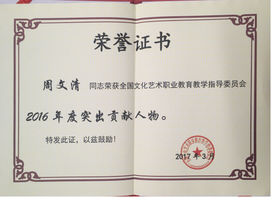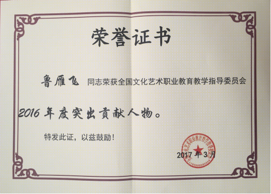 院领导鲁雁飞、周文清荣获 2016年度全国艺术职业教育突出贡献人物荣誉称号