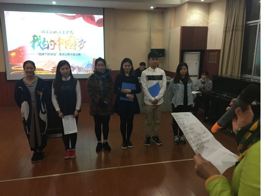 为深入学习贯彻习近平总书记重要讲话精神,加强对大学生的价值观和理想信念教育,我院致力于打造校园品牌文化活动,开展以“我的中国梦”为主题的国旗下的演讲暨竞赛活动。3月27日、28日,分别在松雅校区文化楼321多媒体教室、南院101多媒体教室举行了分校区月度决赛,大赛分教师组与学生组进行。