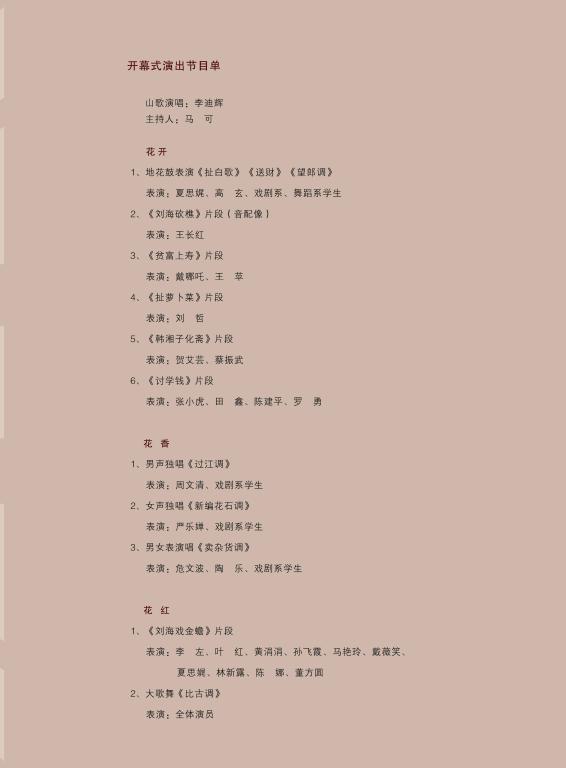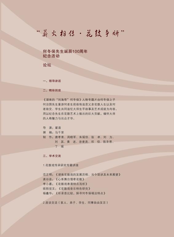 “薪火相传•花鼓争妍”——何冬保先生诞辰100周年纪念开幕式节目单
